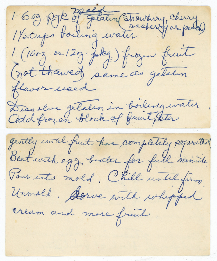 1 (10 or 12 oz. pkg.) frozen fruit (not thawed), in same flavor as gelatin flavor used