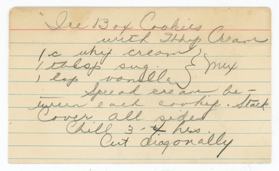 « Previous ItemNext Item » Recipe Ice Box Cookies with Whipped Cream Description1 cup whipped cream 1 tbsp sugar 1 tsp vanilla Mix ingredients & spread between each cookie. Stack. Cover all sides of cookies. Chill 3-4 hours. Cut diagonally. ContributorRose OvianMeal TypeDessertsCuisineAll Recipes Collection Ovian/Megerdichian Citation “Ice Box Cookies with Whipped Cream,” Armenians of Whitinsville, accessed April 23, 2026, https://armeniansofwhitinsville.org/items/show/1153. Email Recipe Print Recipe Download Original Comments Your name Website Email (required) Comment Allowed tags: <p>, <a>, <em>, <strong>, <ul>, <ol>, <li> Please verify you're a human
