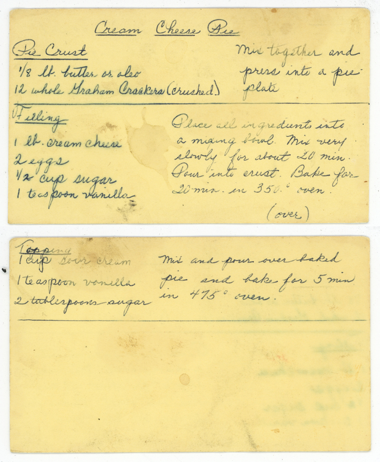 “Cream Cheese Pie,” Armenians of Whitinsville, accessed April 23, 2026, https://armeniansofwhitinsville.org/items/show/1167.
