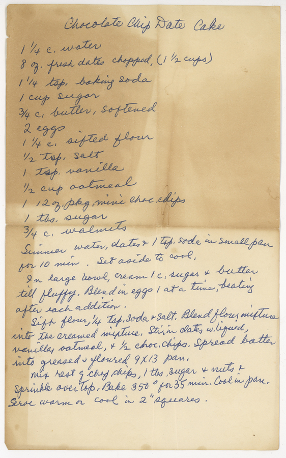 “Chocolate Chip Date Cake,” Armenians of Whitinsville, accessed April 23, 2026, https://armeniansofwhitinsville.org/items/show/1504.