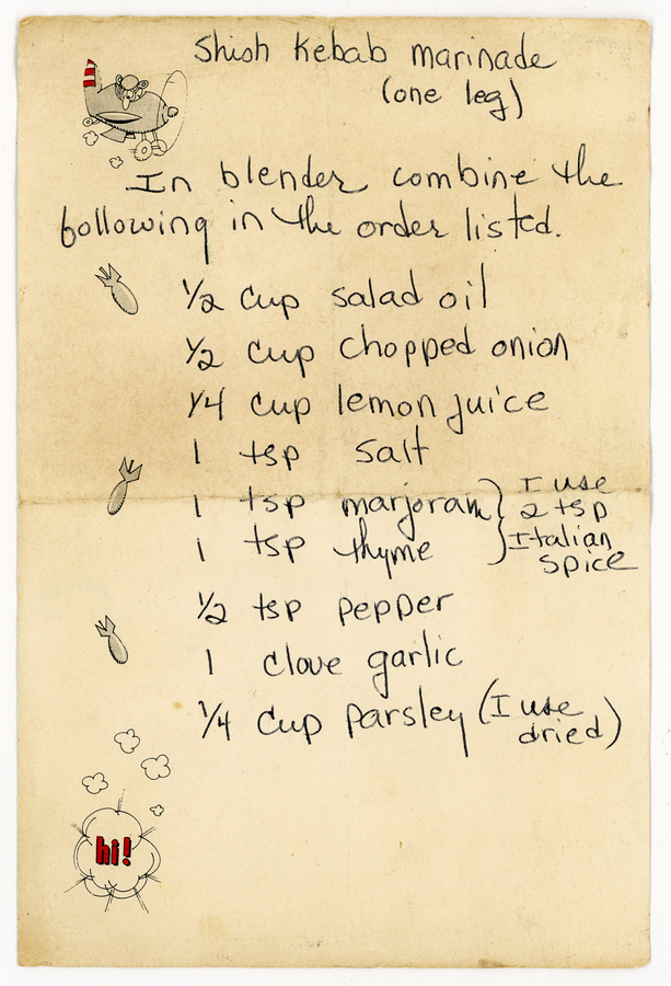 « Previous ItemNext Item » Recipe Shish Kebab Marinade DescriptionIn blender combine the following in the order listed: ½ cup salad oil ½ cup onion ¼ cup lemon juice 1 tsp. salt 1 tsp. marjoram} (I use 2 tsp. 1 tsp. thyme} Italian Spice) ½ tsp. pepper 1 clove garlic ¼ cup parsley (I use dried) ContributorAlice MerianMeal TypeMeat and PoultryCuisineArmenian Collection Merian/Arakelian Citation “Shish Kebab Marinade,” Armenians of Whitinsville, accessed April 23, 2026, https://armeniansofwhitinsville.org/items/show/1505. Email Recipe Print Recipe Download Original Comments Your name Website Email (required) Comment Allowed tags: <p>, <a>, <em>, <strong>, <ul>, <ol>, <li> Please verify you're a human