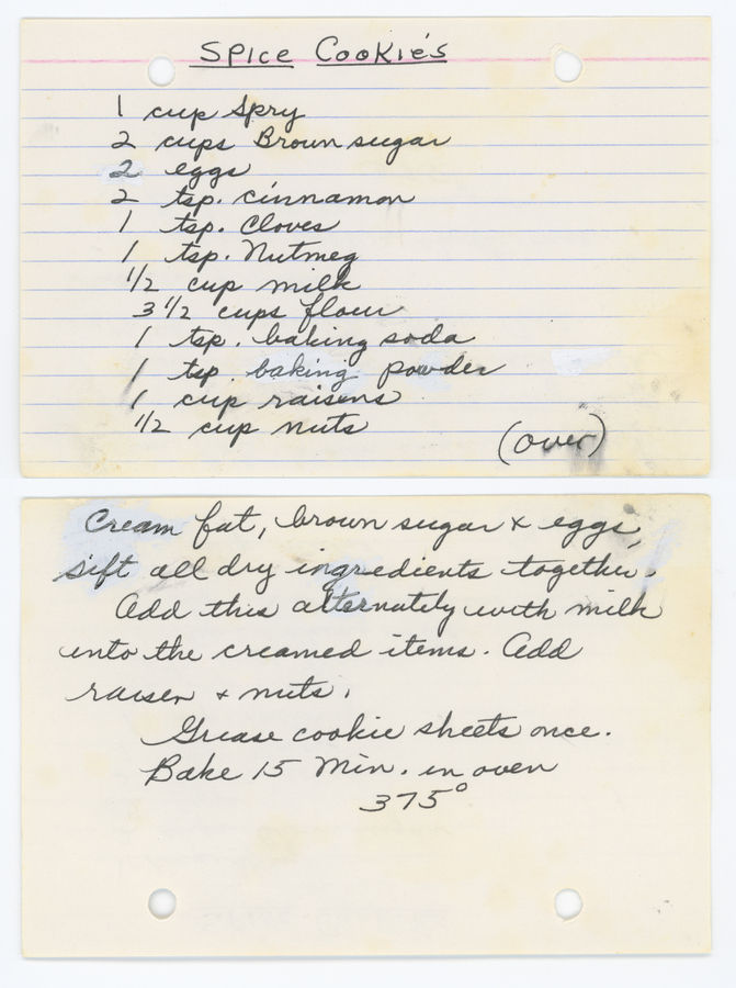 Cream fat, brown sugar & eggs, sift all dry ingredients together. Add this alternately with milk into the creamed items. Add raisen & nuts.