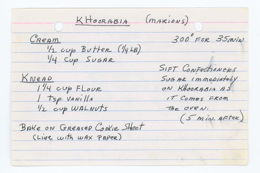Sift confectioners sugar immediately on Khoorabia as it comes from the oven. (5 mins. after)