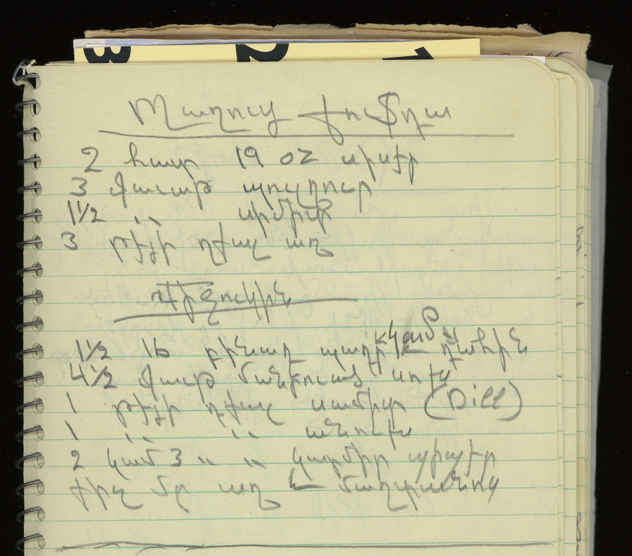 « Previous ItemNext Item » Recipe Lentin or Baghootz Kufta Description2 19 oz. garbanzo beans 3 cups bulgur 1-1/2 cup simit 3 tsp salt Filler: 1-1/2 lb. peanut butter or tahini 4-1/2 cups chopped onions 1 tsp dill (Samid) 1 tsp mint 1 or 2 tsp red pepper A little salt and parsleyTranslated by Jack OuzounianCreatorManoushag GarabedianContributorManoushag GarabedianMeal TypeGrainsCuisineArmenianName IndexGarabedian, Manoushag Collection Garabedian/Pultoian Citation Manoushag Garabedian, “Lentin or Baghootz Kufta,” Armenians of Whitinsville, accessed April 23, 2026, https://armeniansofwhitinsville.org/items/show/1717. Email Recipe Print Recipe Download Original Comments Your name Website Email (required) Comment Allowed tags: <p>, <a>, <em>, <strong>, <ul>, <ol>, <li> Please verify you're a human