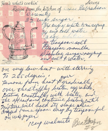 3 ½ cups sugar ¾ cup of white corn syrup 3 egg whites ¼ teaspoon salt 1 teaspoon vanilla
