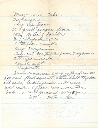 Mary Simonian, “Mayonaise Cake,” Armenians of Whitinsville, accessed April 23, 2026, https://armeniansofwhitinsville.org/items/show/1855.