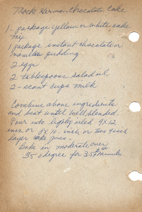 Combine above ingredients and beat until well blended. Pour into lightly oiled 9x12 inch or 8x10 inch or two 9-inch layer cake pans. Bake in moderate oven 350 degree for 35 to 40 minutes.
