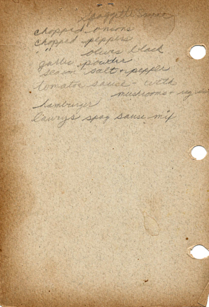 « Previous ItemNext Item » Recipe Spaghetti Sauce DescriptionChopped onionsChopped peppers Chopped olives black Garlic powderSeason salt and pepper Tomato sauce with mushrooms, regular meat hamburger Lawry’s spaghetti sauce mixCreatorMary SimonianContributorJudy GregersonMeal TypeMeat and PoultryCuisineAll RecipesName IndexSimonian, Mary Collection Jundanian/Aghajanian Citation Mary Simonian, “Spaghetti Sauce,” Armenians of Whitinsville, accessed April 23, 2026, https://armeniansofwhitinsville.org/items/show/1903. Email Recipe Print Recipe Download Original Comments Your name Website Email (required) Comment Allowed tags: <p>, <a>, <em>, <strong>, <ul>, <ol>, <li> Please verify you're a human