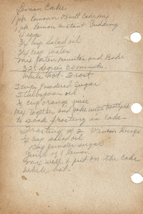 Mary Simonian, “Lemon Cake,” Armenians of Whitinsville, accessed April 23, 2026, https://armeniansofwhitinsville.org/items/show/1907.
