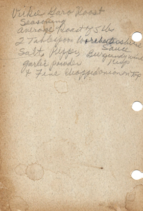 « Previous ItemNext Item » Recipe Vickie Garo Roast Seasoning DescriptionAverage roast of 5 lbs 2 tablespoon Worcestershire sauce Salt, pepper, Burgundy wine 1 cup, garlic powder and fine chopped onion on topCreatorVickie GaroContributorJudy GregersonMeal TypeMeat and PoultryCuisineAll RecipesName IndexGaro, Vickie Collection Jundanian/Aghajanian Citation Vickie Garo, “Vickie Garo Roast Seasoning,” Armenians of Whitinsville, accessed April 23, 2026, https://armeniansofwhitinsville.org/items/show/1927. Email Recipe Print Recipe Download Original Comments Your name Website Email (required) Comment Allowed tags: <p>, <a>, <em>, <strong>, <ul>, <ol>, <li> Please verify you're a human