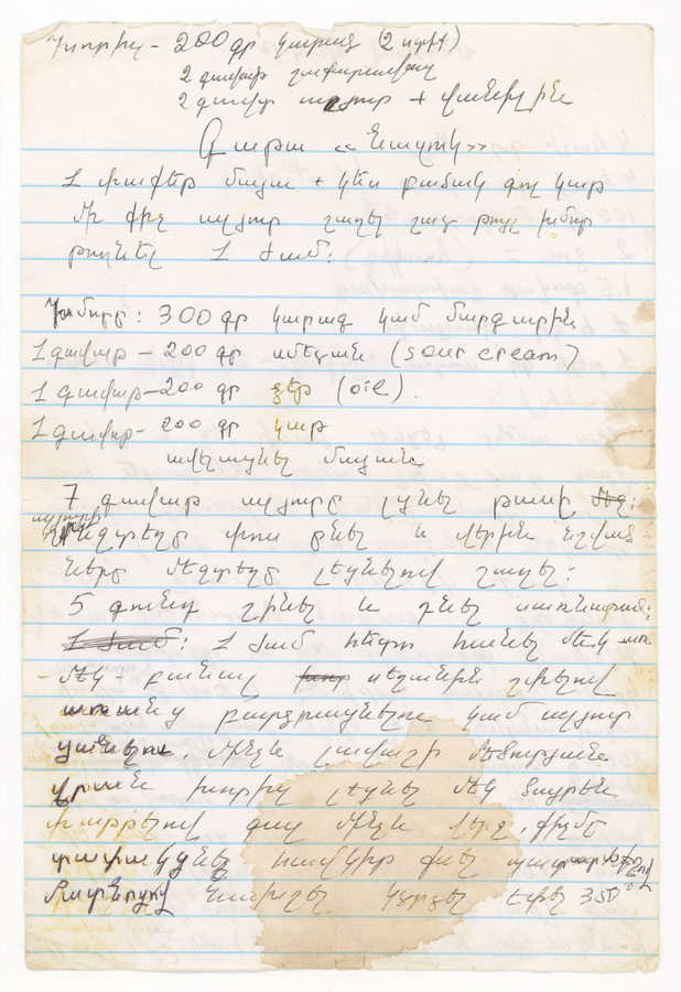 « Previous ItemNext Item » Recipe Anise Kata (Nazoog) DescriptionKhoriz: 2 sticks butter 2 cups sugar 2 cups flour and vanilla Kata: 1 pkg yeast 1/2 cup milk Knead the flour and let it set for an hour.Translated by Jack OuzounianCreatorManoushag GarabedianContributorManoushag GarabedianMeal TypeDessertsCuisineArmenianName IndexGarabedian, Manoushag Collection Garabedian/Pultoian Citation Manoushag Garabedian, “Anise Kata (Nazoog),” Armenians of Whitinsville, accessed April 23, 2026, https://armeniansofwhitinsville.org/items/show/1951. Email Recipe Print Recipe Download Original Comments Your name Website Email (required) Comment Allowed tags: <p>, <a>, <em>, <strong>, <ul>, <ol>, <li> Please verify you're a human