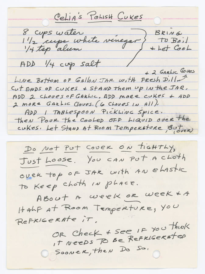 “Celia's polish cukes,” Armenians of Whitinsville, accessed April 23, 2026, https://armeniansofwhitinsville.org/items/show/196.
