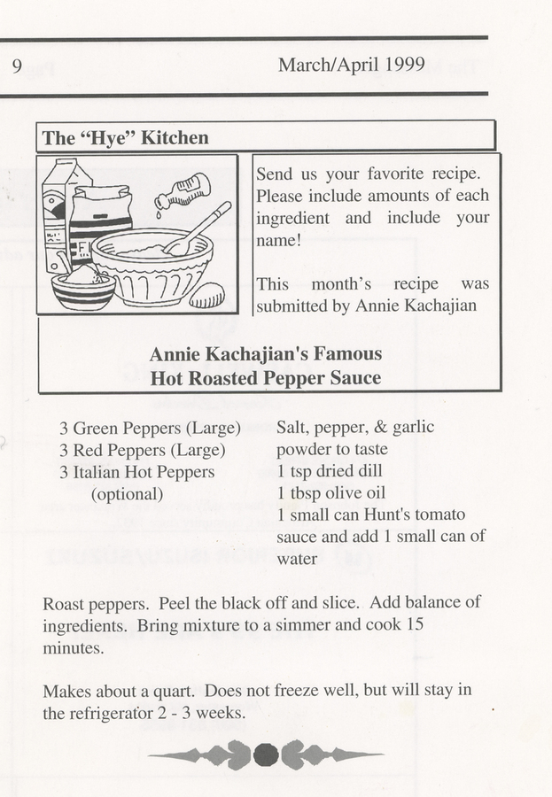 Annie Kachagian, “Annie Kachajian's Famous Hot Roasted Pepper Sauce,” Armenians of Whitinsville, accessed April 23, 2026, https://armeniansofwhitinsville.org/items/show/2044.