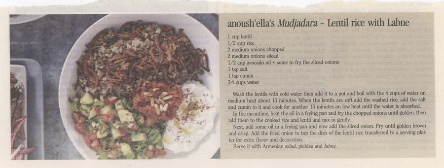 “anoush'ella's Mudgadara, Lentil Rice with Labne,” Armenians of Whitinsville, accessed April 23, 2026, https://armeniansofwhitinsville.org/items/show/2048.