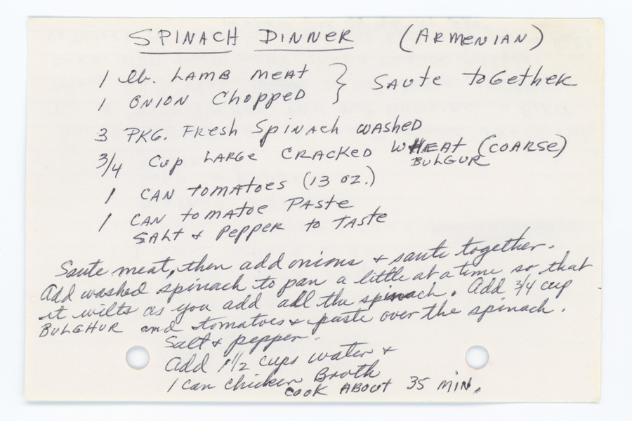 “Spinach dinner,” Armenians of Whitinsville, accessed April 23, 2026, https://armeniansofwhitinsville.org/items/show/208.