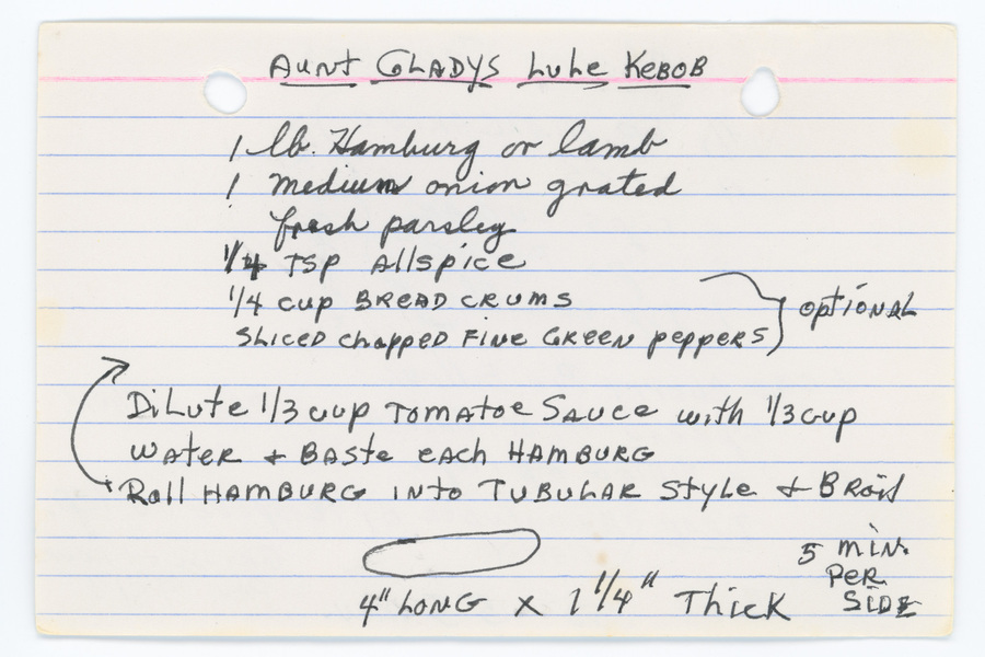 Aunt Gladys Lule Kebob1 lb hamburg or lamb