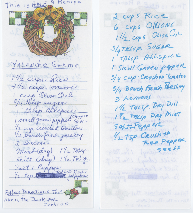 “One half yalanche sarma,” Armenians of Whitinsville, accessed April 23, 2026, https://armeniansofwhitinsville.org/items/show/454.
