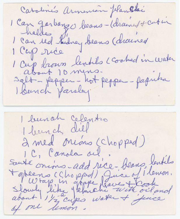 “Caroline's Armenian Yalanchi,” Armenians of Whitinsville, accessed April 23, 2026, https://armeniansofwhitinsville.org/items/show/489.