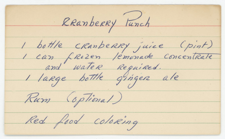 « Previous ItemNext Item » Recipe Cranberry Punch Description1 bottle cranberry juice (pint) 1 can frozen lemonade concentrate and water required. 1 large bottle ginger ale Rum (optional) Red food coloringContributorRose JundanianMeal TypeBeveragesCuisineAll Recipes Collection Jundanian/Aghajanian Citation “Cranberry Punch,” Armenians of Whitinsville, accessed April 23, 2026, https://armeniansofwhitinsville.org/items/show/499. Email Recipe Print Recipe Download Original Comments Your name Website Email (required) Comment Allowed tags: <p>, <a>, <em>, <strong>, <ul>, <ol>, <li> Please verify you're a human