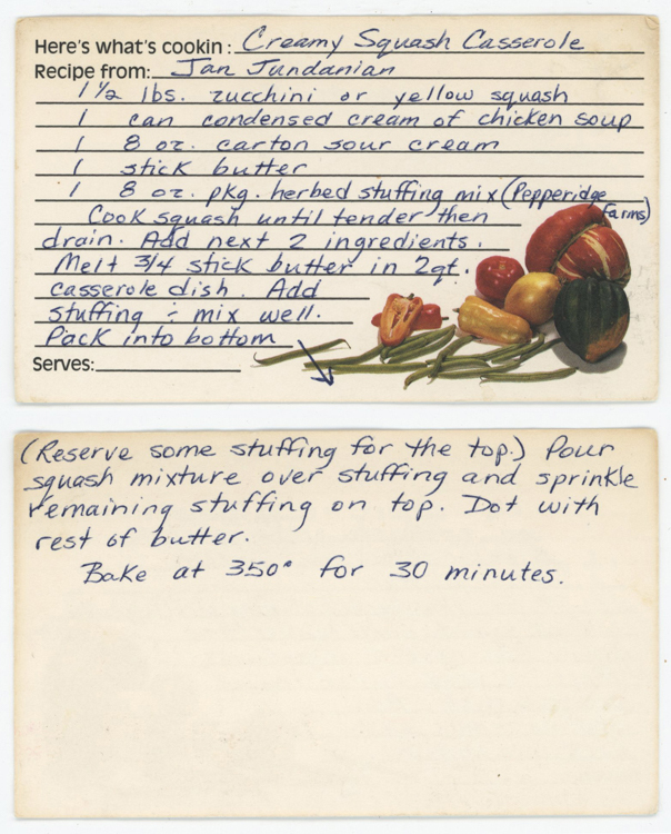 Cook squash until tender then drain. Add next 2 ingredients. Melt ¾ stick butter in 2 qt. casserole dish. Add stuffing & mix well. Pack into bottom. (Reserve some stuffing for the top.) Pour squash mixture over stuffing and sprinkle remaining stuffing on top. Dot with rest of butter.
