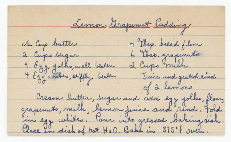 “Lemon Grapenut Pudding,” Armenians of Whitinsville, accessed April 23, 2026, https://armeniansofwhitinsville.org/items/show/534.