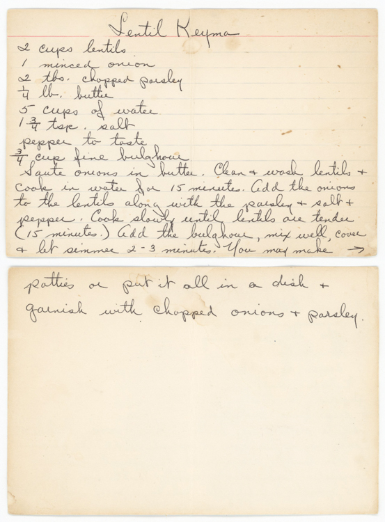 “Lentil Keyma,” Armenians of Whitinsville, accessed April 23, 2026, https://armeniansofwhitinsville.org/items/show/535.