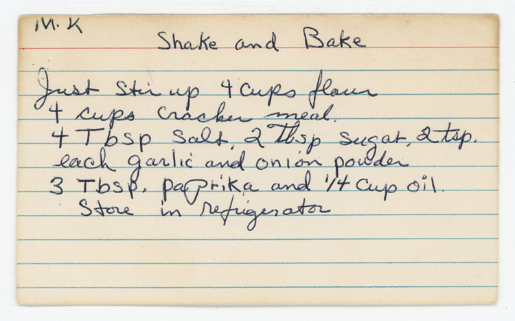 « Previous ItemNext Item » Recipe Shake and Bake (M.K.) DescriptionJust stir up 4 cups flour 4 cups cracker meal 4 Tbsp. salt 2 Tbsp. sugar 2 tsp. each garlic and onion powder 3 Tbsp. paprika 1/4 cup oil Store in refrigeratorContributorRose JundanianMeal TypeMiscellaneousCuisineAll Recipes Collection Jundanian/Aghajanian Citation “Shake and Bake (M.K.),” Armenians of Whitinsville, accessed April 23, 2026, https://armeniansofwhitinsville.org/items/show/563. Email Recipe Print Recipe Download Original Comments Your name Website Email (required) Comment Allowed tags: <p>, <a>, <em>, <strong>, <ul>, <ol>, <li> Please verify you're a human
