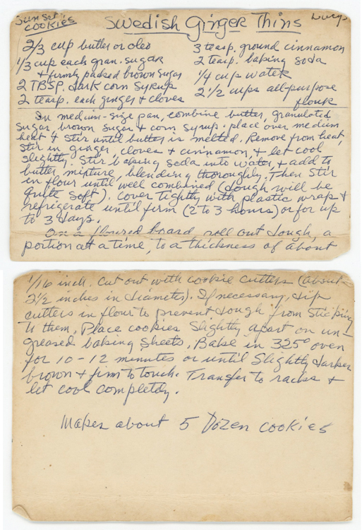 “Swedish Ginger Thins (Sunset Cookies, Lucy's),” Armenians of Whitinsville, accessed April 23, 2026, https://armeniansofwhitinsville.org/items/show/572.