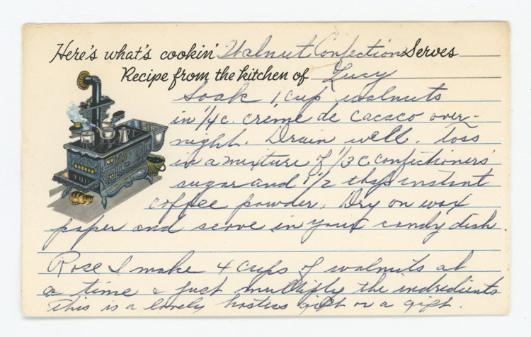« Previous ItemNext Item » Recipe Walnut Confections DescriptionSoak 1 cup walnuts in 1/4 cup crème de cacao overnight. Drain well. Toss in a mixture of 1/3 cup confectioners' sugar and 1-1/2 Tbsp. instant coffee powder. Dry on wax paper and serve in your candy dish. Rose, I make 4 cups of walnuts at a time & just multiply the ingredients. This is a lovely hostess gift or a gift. CreatorLucy PapazianContributorRose JundanianMeal TypeDessertsCuisineAll Recipes Collection Jundanian/Aghajanian Citation Lucy Papazian, “Walnut Confections,” Armenians of Whitinsville, accessed April 23, 2026, https://armeniansofwhitinsville.org/items/show/577. Email Recipe Print Recipe Download Original Comments Your name Website Email (required) Comment Allowed tags: <p>, <a>, <em>, <strong>, <ul>, <ol>, <li> Please verify you're a human