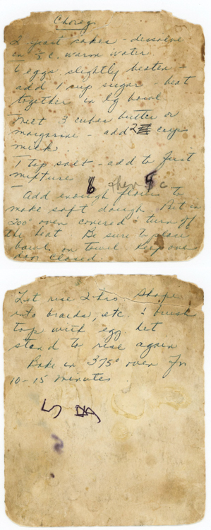 Let rise 2 hrs. Shape into braids, etc. + brush top with egg. Let stand to rise again.