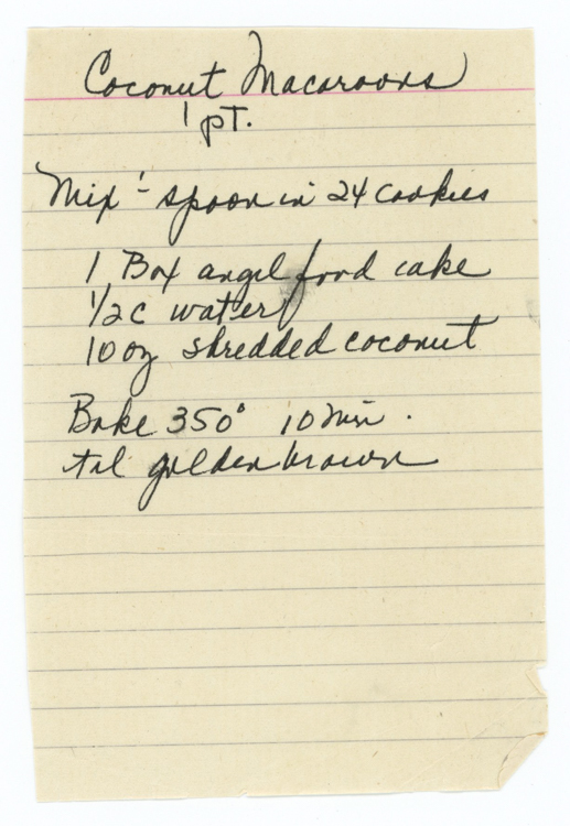 « Previous ItemNext Item » Recipe Coconut Macaroons (1) DescriptionMix + spoon in 24 cookies: 1 box angel food cake 1/2 cup water 10 oz. shredded coconut Bake 350° for 10 min. until golden brown.ContributorClaire MalkasianMeal TypeDessertsCuisineAll Recipes Collection Malkasian/Tashjian Citation “Coconut Macaroons (1),” Armenians of Whitinsville, accessed April 23, 2026, https://armeniansofwhitinsville.org/items/show/608. Email Recipe Print Recipe Download Original Comments Your name Website Email (required) Comment Allowed tags: <p>, <a>, <em>, <strong>, <ul>, <ol>, <li> Please verify you're a human