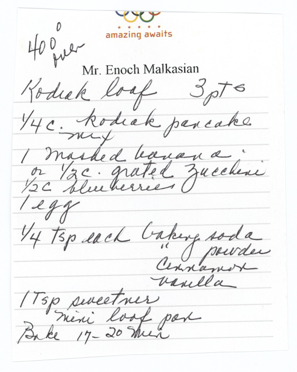 « Previous ItemNext Item » Recipe Kodiak Loaf Description1/4 cup Kodiak pancake mix 1 mashed banana (or 1/2 cup grated zucchini) 1/2 cup blueberries 1 egg 1/4 tsp. baking soda 1/4 tsp. baking powder 1/4 tsp. cinnamon 1/4 tsp. vanilla 1 tsp. sweetener Mini loaf pan. Bake 400°, 17-20 min.ContributorClaire MalkasianMeal TypeBreadsCuisineAll Recipes Collection Malkasian/Tashjian Citation “Kodiak Loaf,” Armenians of Whitinsville, accessed April 23, 2026, https://armeniansofwhitinsville.org/items/show/623. Email Recipe Print Recipe Download Original Comments Your name Website Email (required) Comment Allowed tags: <p>, <a>, <em>, <strong>, <ul>, <ol>, <li> Please verify you're a human