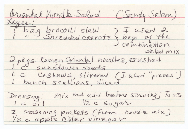 “Oriental Noodle Salad (Sandy Salem),” Armenians of Whitinsville, accessed April 23, 2026, https://armeniansofwhitinsville.org/items/show/634.