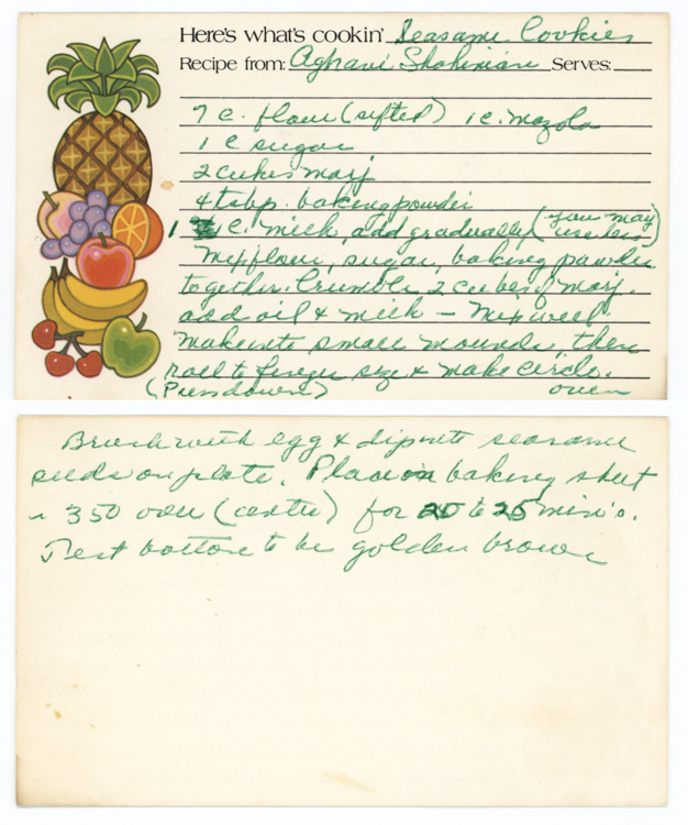 “Sesame Cookies (Aghavi Shahinian),” Armenians of Whitinsville, accessed April 23, 2026, https://armeniansofwhitinsville.org/items/show/657.