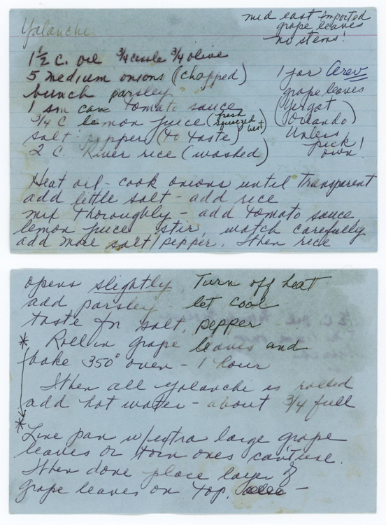 Line pan with extra large grape leaves or torn ones that can't be rolled. Roll mixture in grape leaves, place in pan. When done place layer of grape leaves over rolls. When all yalanchi is rolled add hot water - about 3/4 full Bake in 350° oven, 1 hour.